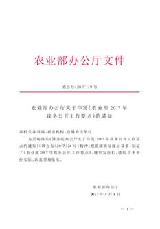 2017年,農業部網站信息公開專欄共主動公開信息1204條,政務版網站群共發布信息3.3萬條,瀏覽量達日均351萬次;收到信息公開申請488件,全部依法予以答復;收到信息公開行政復議7件,因信息公開而被提起行政訴訟11件;未發生政府信息公開收費及減免情況。