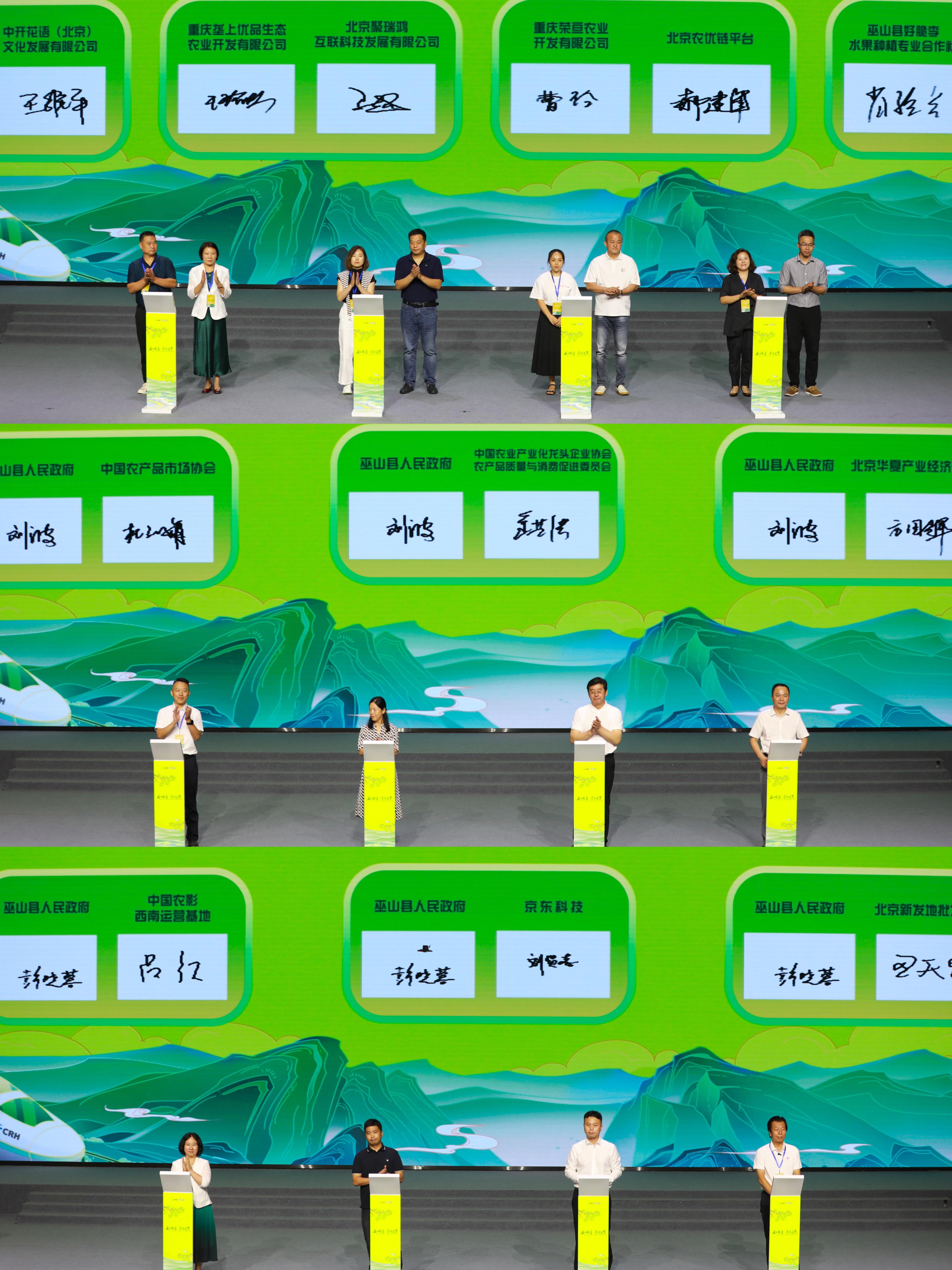 最讓人熱血沸騰的當屬簽約環(huán)節(jié)!巫山縣人民政府與京東科技、北京新發(fā)地農(nóng)產(chǎn)品批發(fā)市場、中國農(nóng)產(chǎn)品市場協(xié)會、中國農(nóng)業(yè)產(chǎn)業(yè)化龍頭企業(yè)協(xié)會農(nóng)產(chǎn)品質(zhì)量與消費促進委員會、北京華夏產(chǎn)業(yè)經(jīng)濟研究院等行業(yè)巨頭成功牽手,達成戰(zhàn)略合作;巫山縣好脆李水果種植、巫山縣村播聯(lián)盟、巫山縣辣二嬢食品、重慶壟上優(yōu)品與中開花語(北京)文化發(fā)展有限公司等企業(yè)簽訂產(chǎn)銷協(xié)議。一筆筆簽約,一次次握手,仿佛一條條暢通無阻的“甜蜜通道”被打通,必將讓巫山脆李在市場上勢如破竹,競爭力飆升!?