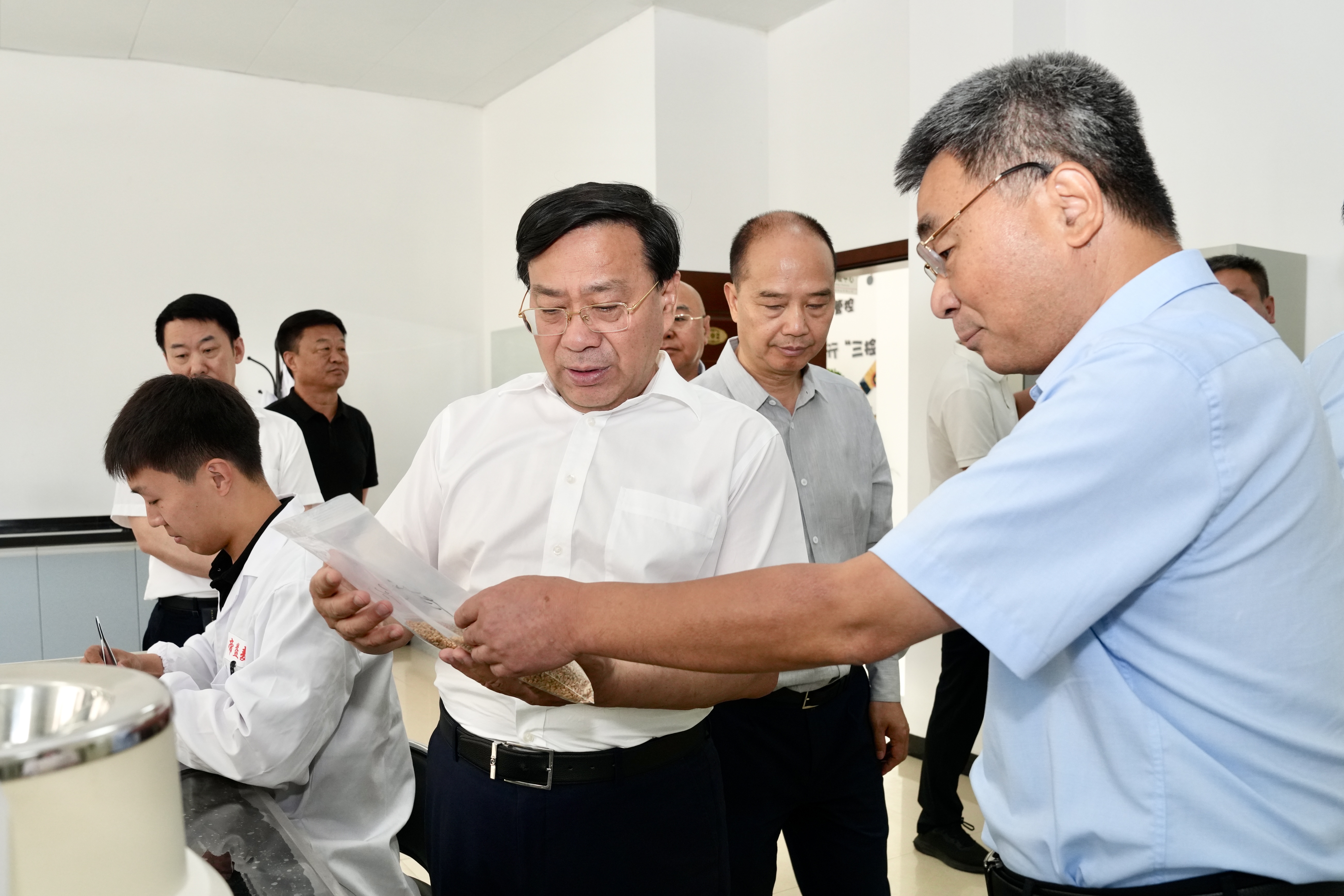 韓俊來到延津縣帝益麥種業(yè)公司,了解小麥新品種選育及推廣情況,鼓勵公司與科研機構(gòu)建立協(xié)同創(chuàng)新機制,加快品種創(chuàng)新攻關(guān),培育更多高產(chǎn)、抗逆、廣適的優(yōu)良品種,搞好成果轉(zhuǎn)化,把好品種盡快推廣開。他還來到克明面粉有限公司,調(diào)研小麥加工及產(chǎn)業(yè)發(fā)展情況,強調(diào)要做好“糧頭食尾”增值文章,聚焦市場需要開發(fā)適銷對路的產(chǎn)品,延伸產(chǎn)業(yè)鏈條,發(fā)展產(chǎn)業(yè)集群,全鏈條推動糧食產(chǎn)業(yè)高質(zhì)量發(fā)展。